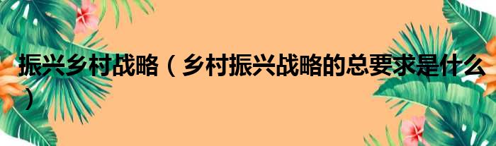 振兴乡村战略(乡村振兴战略的总要求是什么)