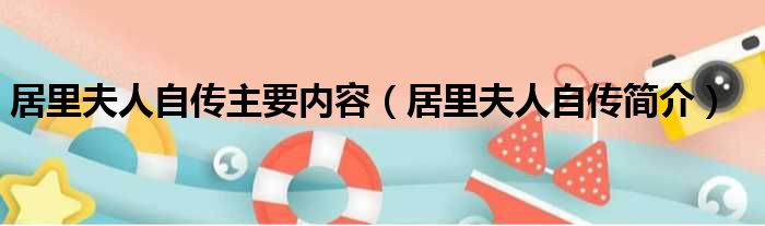 大家好,小东方来为大家解答以上的问题。居里夫人自传主要内容,居里夫人自传简介这个很多人还不知道,现在让我们一起来看看吧!