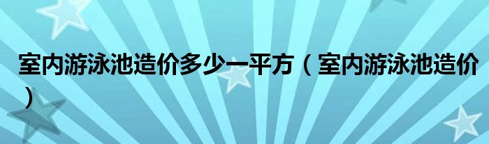 大家好,小东方来为大家解答以上的问题。室内游泳池造价多少一平方,室内游泳池造价这个很多人还不知道,现在让我们一起来看看吧!
