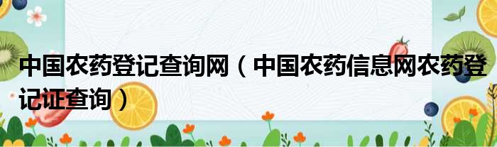 中国农药登记查询网(中国农药信息网农药登记证查询)