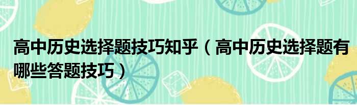 高中历史选择题技巧知乎(高中历史选择题有哪些答题技巧)