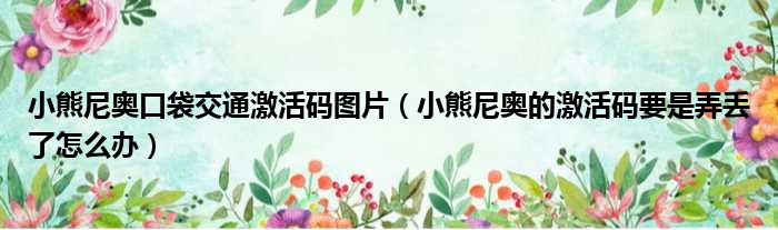 导读 大家好,小东方来为大家解答以上的问题。小熊尼奥口袋交通激活码图片,小熊尼奥的激活码要是弄丢了怎么办这个很多人还不知道,现在让我们一起