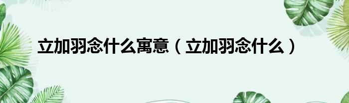立加羽念什么寓意(立加羽念什么)