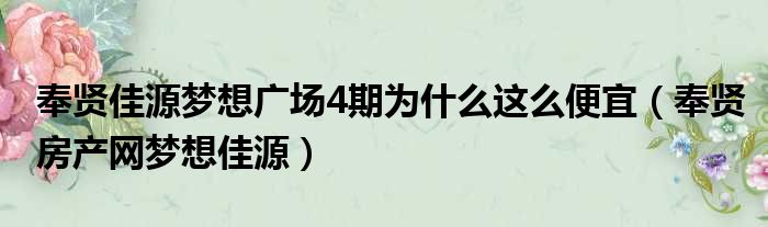 奉贤佳源梦想广场4期为什么这么便宜(奉贤房产网梦想佳源)