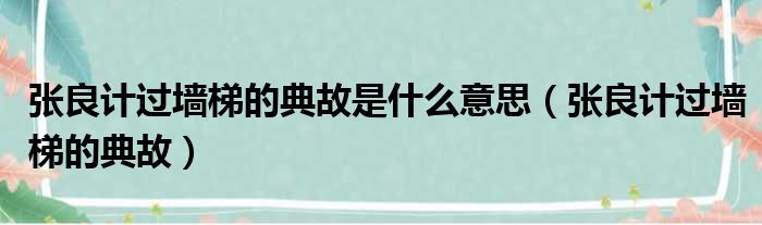 张良计过墙梯的典故是什么意思(张良计过墙梯的典故)
