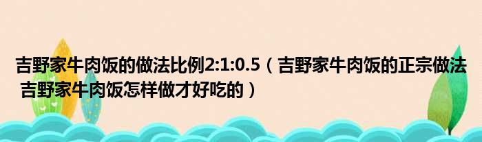 吉野家牛肉饭的做法比例2:1:0.5(吉野家牛肉饭的正宗做法 吉野家牛肉饭怎样做才好吃的)