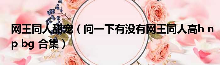 大家好,小东方来为大家解答以上的问题。网王同人甜宠,问一下有没有网王同人高h np bg 合集这个很多人还不知道,现在让我们一起来看看吧!