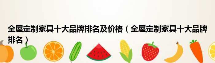 全屋定制家具十大品牌排名及价格(全屋定制家具十大品牌排名)