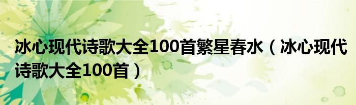 冰心现代诗歌大全100首繁星春水(冰心现代诗歌大全100首)