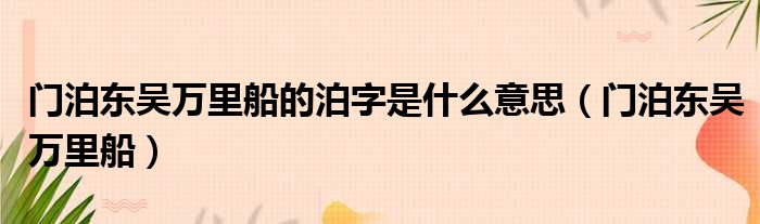 门泊东吴万里船的泊字是什么意思(门泊东吴万里船)