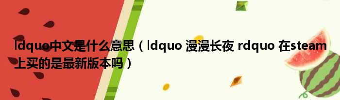 ldquo中文是什么意思(ldquo 漫漫长夜 rdquo 在steam上买的是最新版本吗)