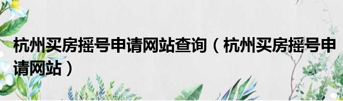 杭州买房摇号申请网站查询(杭州买房摇号申请网站)