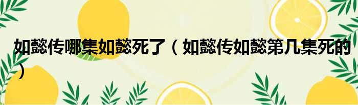 如懿传哪集如懿死了(如懿传如懿第几集死的)