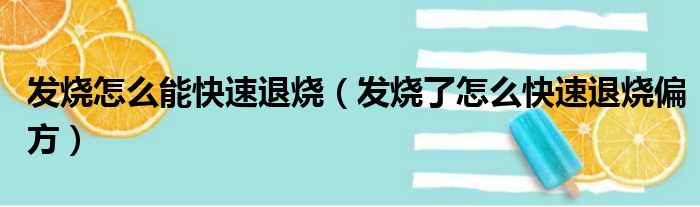 发烧怎么能快速退烧(发烧了怎么快速退烧偏方)