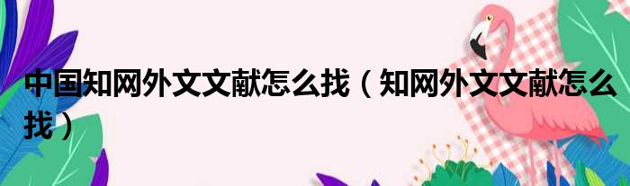 中国知网外文文献怎么找(知网外文文献怎么找)