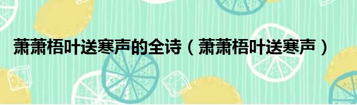萧萧梧叶送寒声的全诗(萧萧梧叶送寒声)