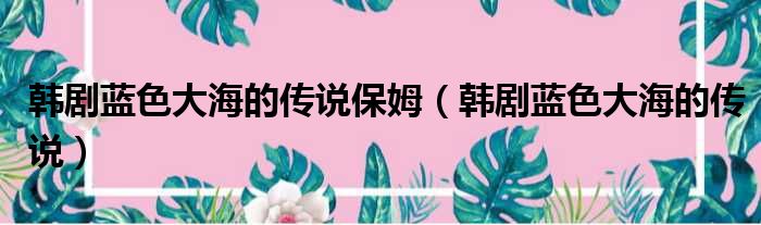 韩剧蓝色大海的传说保姆(韩剧蓝色大海的传说)