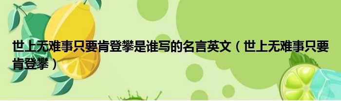 世上无难事只要肯登攀是谁写的名言英文(世上无难事只要肯登攀)