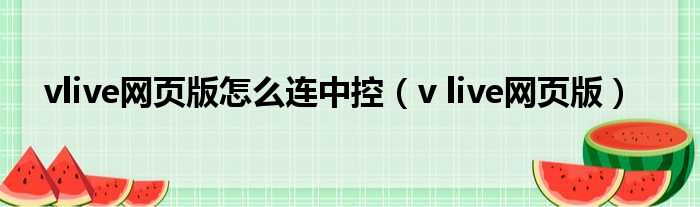 vlive网页版怎么连中控(v live网页版)