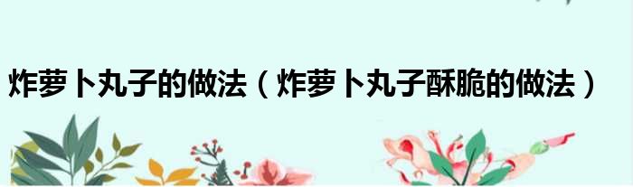 炸萝卜丸子的做法(炸萝卜丸子酥脆的做法)