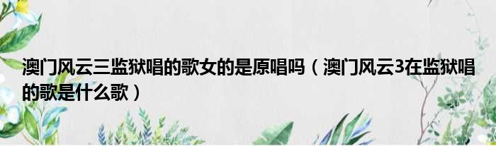 导读 大家好,小东方来为大家解答以上的问题。澳门风云三监狱唱的歌女的是原唱吗,澳门风云3在监狱唱的歌是什么歌这个很多人还不知道,现在让我们