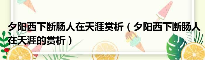 夕阳西下断肠人在天涯赏析(夕阳西下断肠人在天涯的赏析)