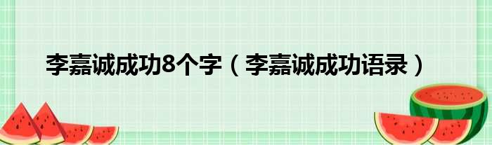大家好,小东方来为大家解答以上的问题。李嘉诚成功8个字,李嘉诚成功语录这个很多人还不知道,现在让我们一起来看看吧!