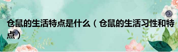 仓鼠的生活特点是什么(仓鼠的生活习性和特点)