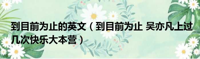 导读 大家好,小东方来为大家解答以上的问题。到目前为止的英文,到目前为止 吴亦凡上过几次快乐大本营这个很多人还不知道,现在让我们一起来看看