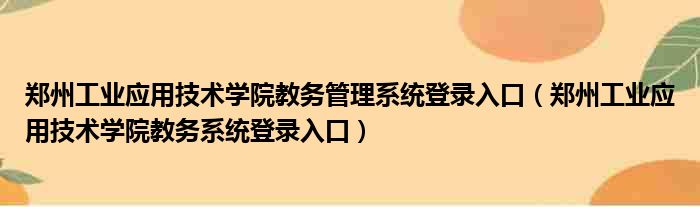 郑州工业应用技术学院教务管理系统登录入口(郑州工业应用技术学院教务系统登录入口)