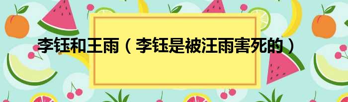 导读 大家好,小东方来为大家解答以上的问题。李钰和王雨,李钰是被汪雨害死的这个很多人还不知道,现在让我们一起来看看吧!1、李钰与汪雨的恋情