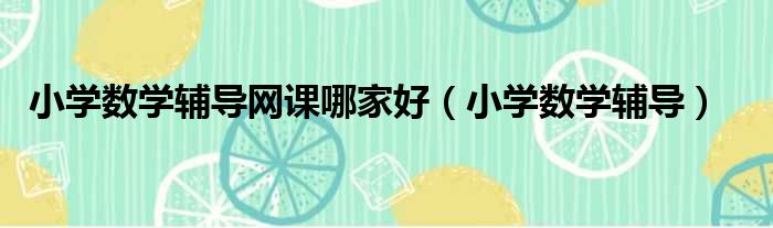 小学数学辅导网课哪家好(小学数学辅导)