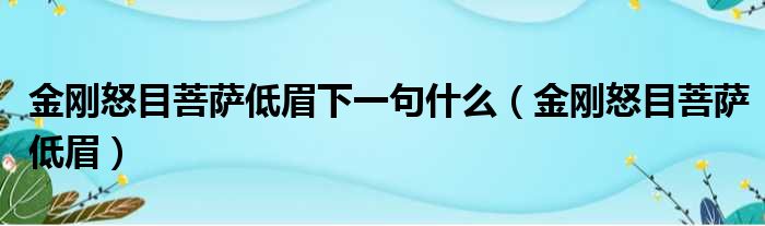 金刚怒目菩萨低眉下一句什么(金刚怒目菩萨低眉)