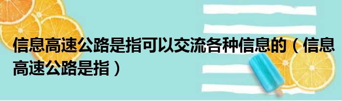 信息高速公路是指可以交流各种信息的(信息高速公路是指)