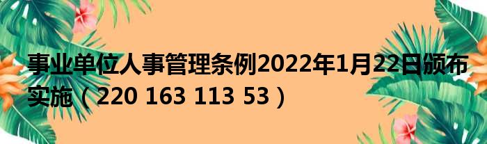 大家好,小东方来为大家解答以上的问题。事业单位人事管理条例2022年1月22日颁布实施,220 163 113 53这个很多人还不知道,现在让我们一起来看看吧!