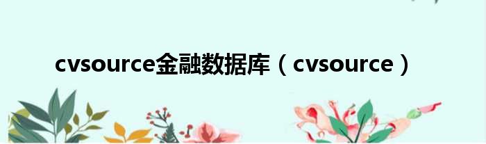 导读 大家好,小东方来为大家解答以上的问题。cvsource金融数据库,cvsource这个很多人还不知道,现在让我们一起来看看吧!1、首先,CVSource的数