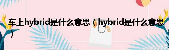大家好,小东方来为大家解答以上的问题。车上hybrid是什么意思,hybrid是什么意思这个很多人还不知道,现在让我们一起来看看吧!