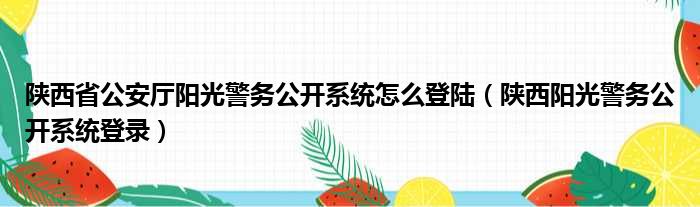 陕西省公安厅阳光警务公开系统怎么登陆(陕西阳光警务公开系统登录)