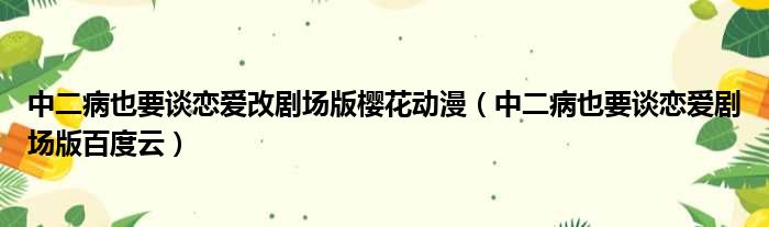 导读 大家好,小东方来为大家解答以上的问题。中二病也要谈恋爱改剧场版樱花动漫,中二病也要谈恋爱剧场版百度云这个很多人还不知道,现在让我们一