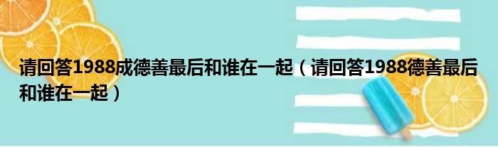 大家好,小东方来为大家解答以上的问题。请回答1988成德善最后和谁在一起,请回答1988德善最后和谁在一起这个很多人还不知道,现在让我们一起来看看吧!
