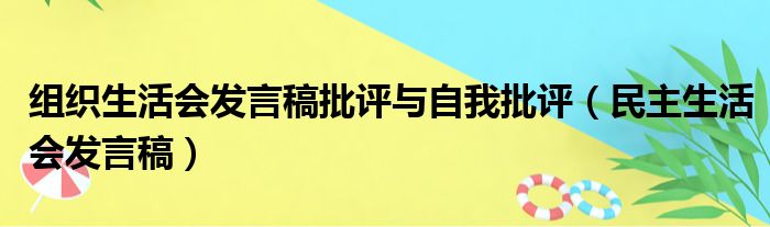 组织生活会发言稿批评与自我批评(民主生活会发言稿)