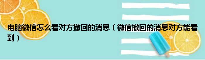 电脑微信怎么看对方撤回的消息(微信撤回的消息对方能看到)