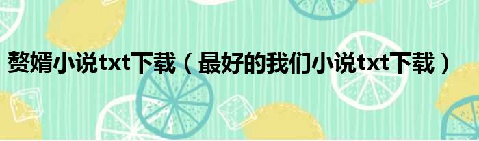 大家好,小东方来为大家解答以上的问题。赘婿小说txt下载,最好的我们小说txt下载这个很多人还不知道,现在让我们一起来看看吧!