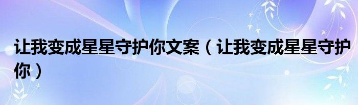 大家好,小东方来为大家解答以上的问题。让我变成星星守护你文案,让我变成星星守护你这个很多人还不知道,现在让我们一起来看看吧!