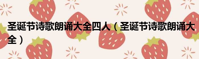 圣诞节诗歌朗诵大全四人(圣诞节诗歌朗诵大全)