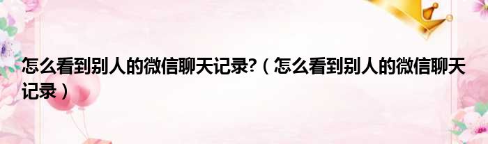 怎么看到别人的微信聊天记录?(怎么看到别人的微信聊天记录)