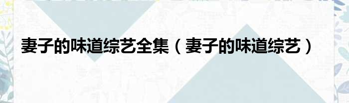 导读 大家好,小东方来为大家解答以上的问题。妻子的味道综艺全集,妻子的味道综艺这个很多人还不知道,现在让我们一起来看看吧!1、《妻子的味道