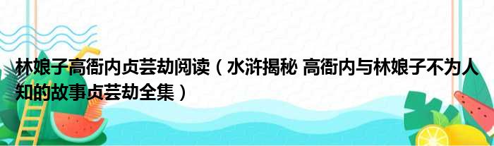 林娘子高衙内贞芸劫阅读(水浒揭秘 高衙内与林娘子不为人知的故事贞芸劫全集)