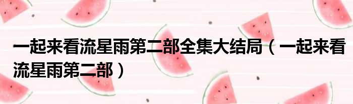 一起来看流星雨第二部全集大结局(一起来看流星雨第二部)