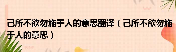 己所不欲勿施于人的意思翻译(己所不欲勿施于人的意思)